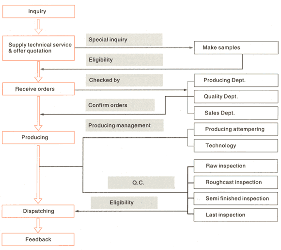 About complain: When the Sales Dep. Receiving customers' complain of products, they should make feedback to Quality Dep. with written-form. Then the Quality Dep. will check responsible department, analyze reasons, make and implement new measures. Then Quality Dep. track and confirm experimental effects and make feedback to the Sales Dep.. At last, The Sales Dep. turns to tell clients and obtains customers' satisfaction in time. In addition, our Sales Dep. regularly organizes clients' satisfaction investigation to know if the customers are satisfied with our service and what the customers need indeed. If you have any questions or demands, welcome to call us, my company prepares to contribute effort to you at any time.